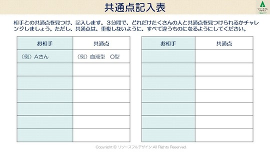「ただし、記入表にメモする共通点は、すべて違うものになるようにしてください」
