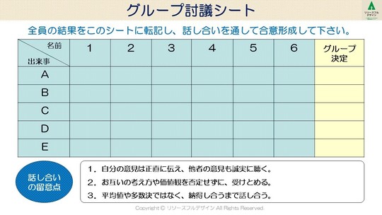 「次に、話し合いを通して、メンバー全員が納得できる妥当解を決めて下さい」