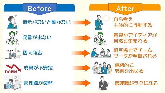 これからの組織に求められるのは、指示を待つ人材ではなく、自ら考え、動き、チームで価値を生み出せる人材です。そのためには、「人を変える」のではなく、「人が変わる環境と関係性」を設計することが不可欠です。