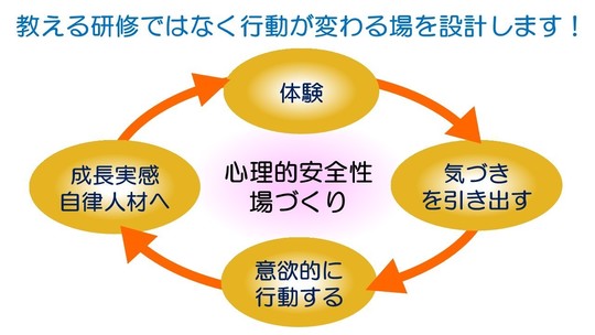 私たちは、知識を教える研修はしません。なぜなら、人は教えられたことよりも、自ら気づいたことの方が意欲的に行動するからです。なので、考える材料として「体験」を提供し、体験を通じて気づきを引き出し、自発的な行動を引き出します!